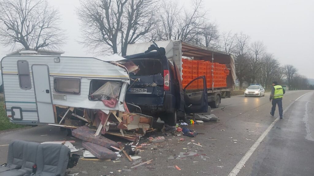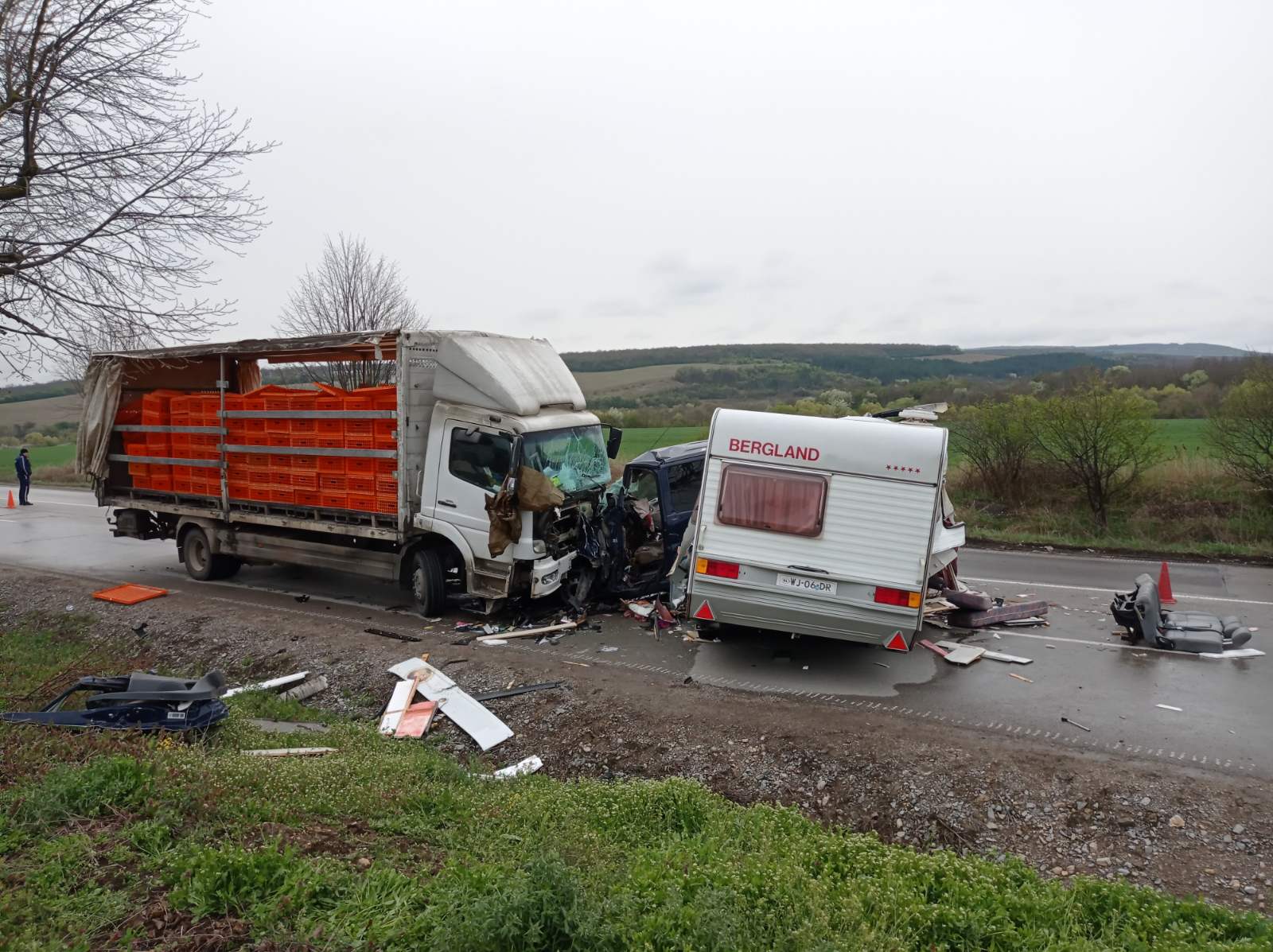 Сигналът за тежкото произшествие е бил получен около 05:24 часа днес на тел.112. Микробус „Пежо“ с прикачена каравана, управляван от 39-годишен мъж от разградското село Ясеновец, пътувал от Дунав мост към Разград. На излизане от село Осенец, на 100-ина метра след бензиностанцията, водачът е загубил контрол над буса. Той е навлязъл в лентата за насрещно движение и се е ударил челно в товарен „Мерцедес“, шофиран от 62-годишен мъж от село Дянково. На място са извикани екипи на полицията и „Спешна помощ“.