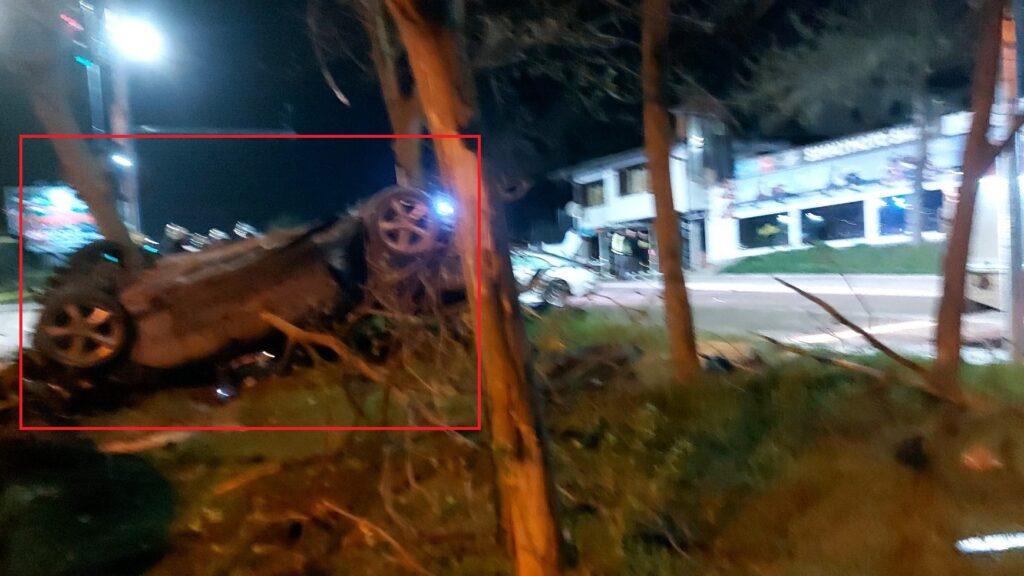 От удара, автомобилът, който бил ударен, се е обърнал по таван и се е блъснал в крайпътно дърво, нанасяйки щети върху други две МПС-та, паркирани в близост.