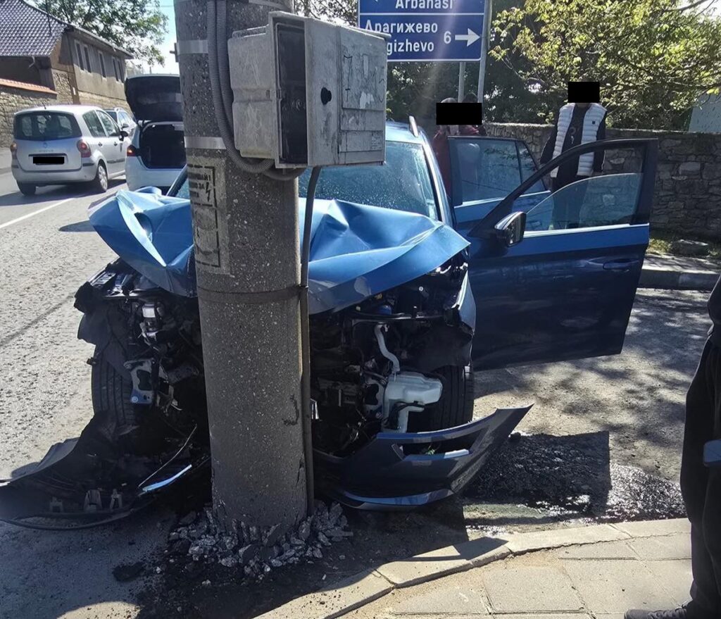 Злополуката е станала днес. На кадри споделени в социалната мрежа се вижда автомобил, който се е блъснал в електрически стълб. Към момента няма информация какво е състоянието на участниците в произшествието.