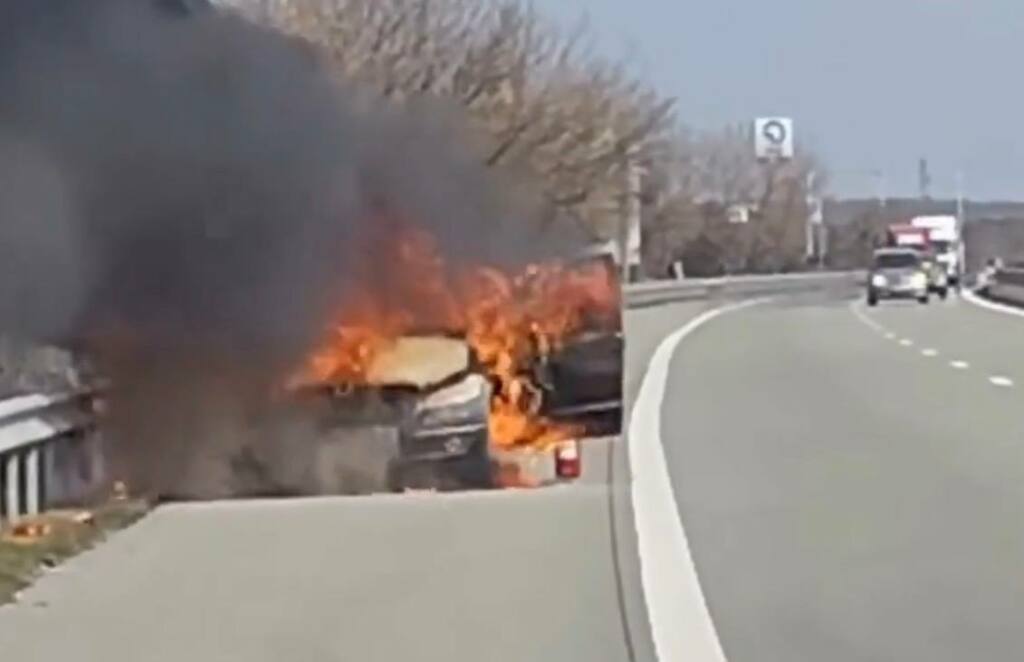 По информация на читател на медията, който е подал сигнал до редакцията, колата гори в аварийната лента на 153-ия километър от аутобана, край отбивката за Шишманци.
