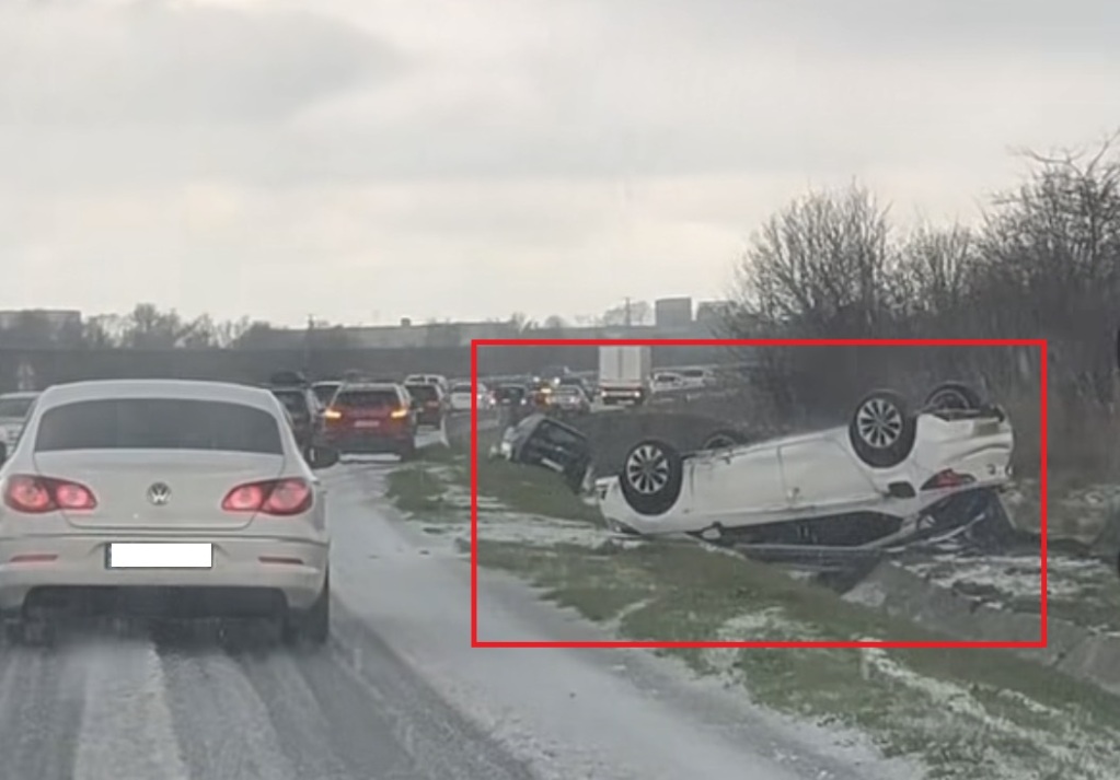 От разпространени кадри се вижда сериозна пътна ситуация – две коли са излезли от пътното платно и са попаднали в крайпътната канавка. Единият автомобил е обърнат по таван, което говори за силен удар или загуба на контрол при движение.