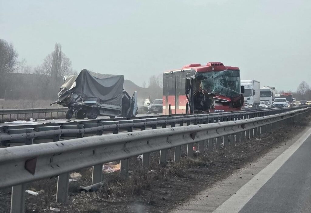 Според първоначалната информация са се сблъскали микробус и автобус с румънски регистрационен номер. Към момента няма информация какво е състоянието на участниците в инцидента.