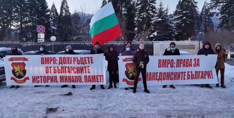От ВМРО се събраха рано тази сутрин пред резиденция „Бояна“. От партията настояват за среща с българския и македонския премиер, за да ги запознаят с общата ни история и литература.