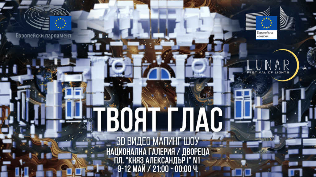 Денят на Европа ще бъде отбелязан с триизмерно видео мапинг шоу „Твоят глас“ на фасадата на Национална галерия – Двореца на пл. „Княз Александър I“ на 9 май с начало от 21:00 ч. То е част от третото издание на Фестивала на светлините LUNAR. Организатор на спектакъла „Твоят глас“ е Бюрото на Европейския парламент в партньорство с Представителството на Европейската комисия в България.