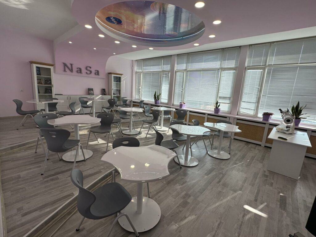 На първия етаж в новото пространство са разположени кабинети, в които децата ще изучават алгоритмите на изкуствения интелект, а на втория етаж са професиите на бъдещето. Класните стаи са оборудвани с роботи и електронни библиотеки, чиято цел е да мотивират учениците да бъдат по-активни участници в образователния процес.