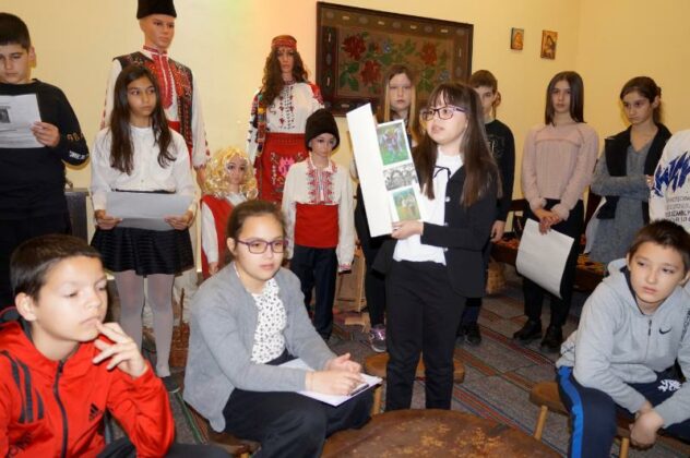 Милка Пухалска от секция „Етнография и фолклор“ към Краеведското дружество в Мездра показа на любознателните деца различни видове забрадки и начини на забраждане, характерни за този край, а председателят на Краеведското дружество Мирослав Гетов им разказа за историята и дейността на дружеството и ги покани да участват в Майските краеведски четения, организирани ежегодно в Мездра.
