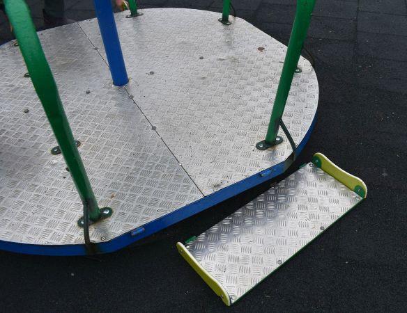 Община Разград е установила посегателство над детската площадка до хотел „Централ“ след подаден сигнал във Фейсбук. Увредено е едно от съоръженията – рампите, по които инвалидните колички се качват на въртележката – те са били извадени и захвърлени в тревната площ наблизо, били са счупени или липсвали нацяло и свързващите елементи между рампите и основната част от конструкцията.