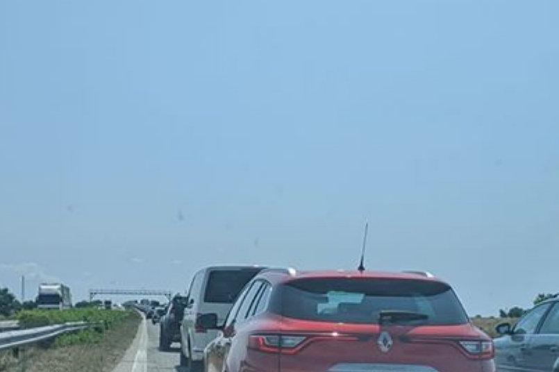 километър в посока Бургас, съобщиха от Агенция „Пътна инфраструктура“. Оттам уточниха, че временно движението се осъществява в активната лента заради пътнотранспортното произшествие.
