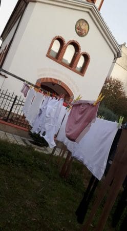 Огромен простор се е разпрострял пред главния вход на арменската православна църква в Пазарджик, съобщава „NOVA”. Миряните, дошли за богослужение, се разминават всеки ден с чаршафи, одеяла, сутиени и гащи.