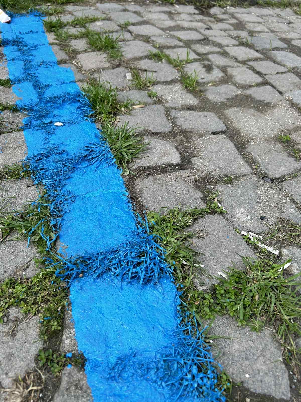 Изненадата им бе голяма, когато се оказа, че сините ленти се появиха директно върху…калта и между огромните дупки, осеяли голяма част от центъра на Бургас.