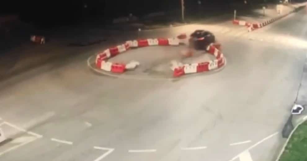 Кръговото кръстовище в Перник е оформено с пластмасови прегради, които следват предварително начертана кръгла форма. Въпреки нея обаче, доколкото разбираме от видеоклипа, кръстовището е неефекасно. Шофьорите, неспазващи правилата, се вижда как минават през него директно, причинявайки пътнотранспортни произшествие.