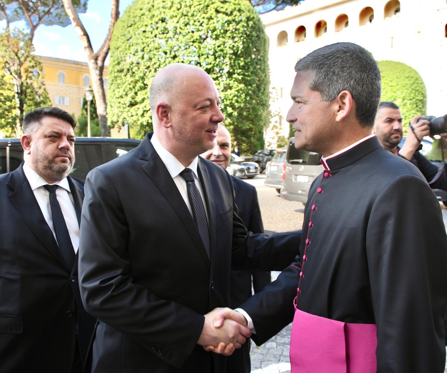 Във водената от премиера българска делегация участват също вицепремиерите Атанас Зафиров и Гроздан Караджов, както и посланикът на страната ни към Светия престол Костадин Коджабашев.