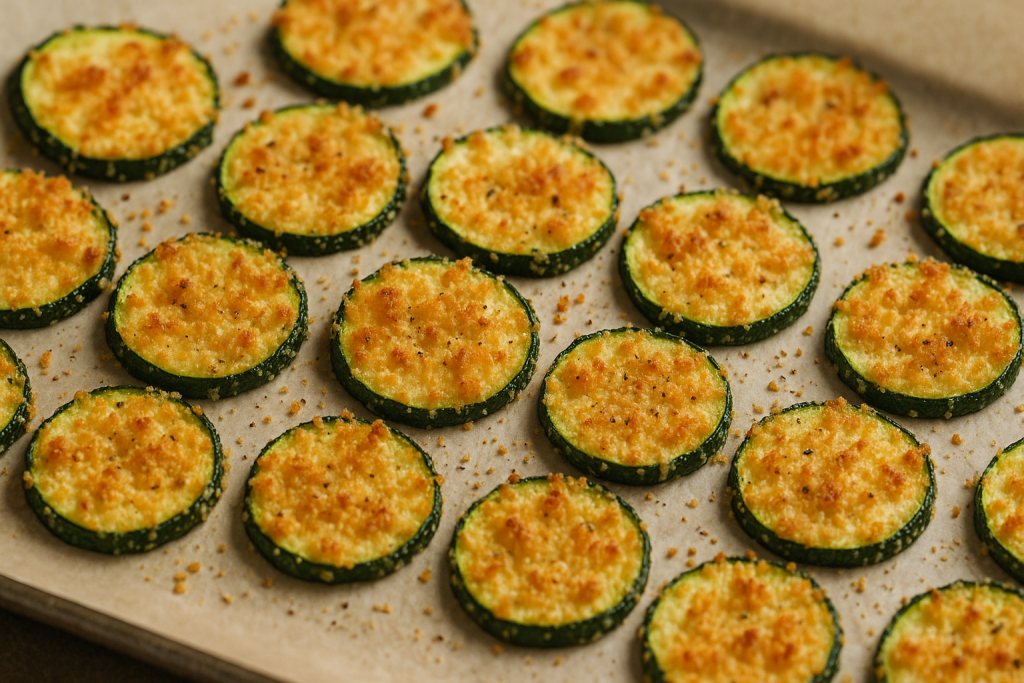 В свят, където повечето „чипсове“ водят до угризения, тази рецепта е глътка въздух за всички, които обичат да похапват нещо хрупкаво, но с по-малко мазнина и повече вкус. Тиквичките влизат в главната роля – подкрепени от златист пармезан, щипка чесън и леко хрупкава коричка от галета. Без пържене, без излишна мазнина – само фурна, подправки и апетит.