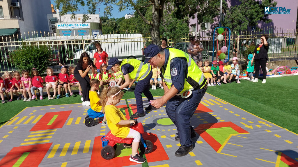 Мероприятието имаше за цел да научи малчуганите как да се справят с пътната обстановка. За това им помогнаха полицейските служители, които регулираха движението, проверяваха техните документи и оценяваха знанията на възпитаниците на детското заведение.