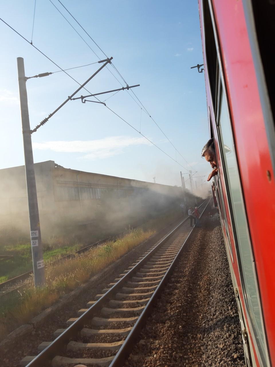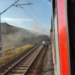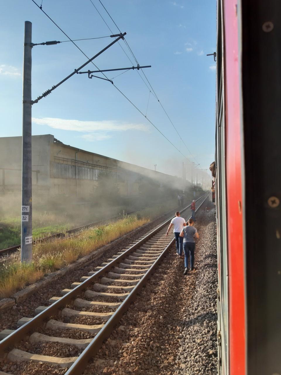 Локомотив на пътническия влак oт Ямбол за Бургас се е запалил близо до „Лукойл Нефтохим“, съобщи очевидец за Искра.бг. Няма пострадали хора.