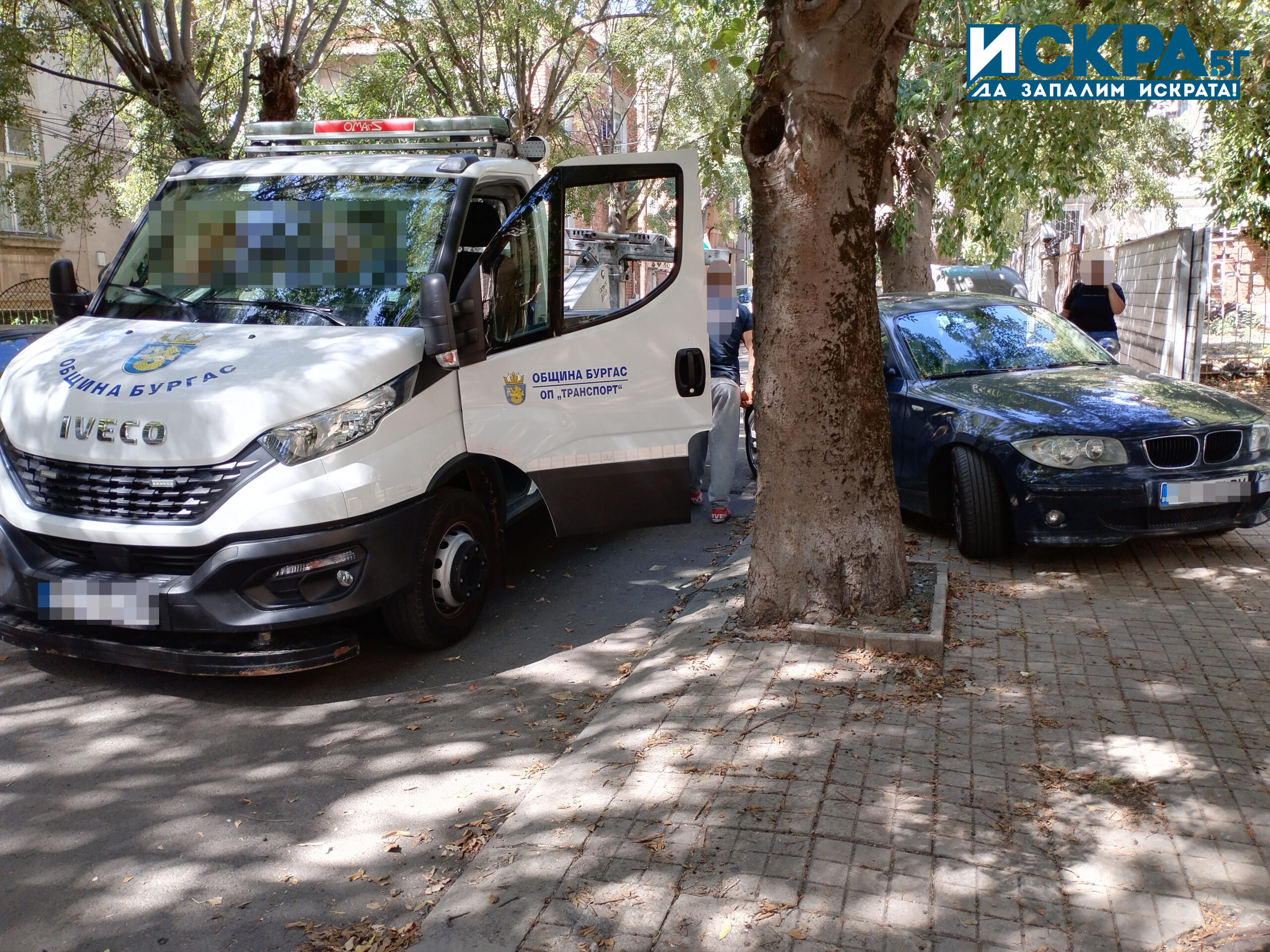 Инцидентът е станал на улица „Асен Златаров“ № 43. По разказ на свидетели възрастна жена е подала сигнал за неправилно паркиран лек автомобил върху тротоар, точно срещу вход/изход на паркинг. В резултат на това на място е пристигнал „паяк“, собственост на Община Бургас. Служителите му обаче са отказали да вдигнат колата, защото собственикът й е бил до нея и заради това пострадалият мъж е застанал срещу служебния автомобил и е започнал да го снима. Жената, подала сигнал твърди, че „паякът“ е блъснал мъжа, той е паднал и си е ударил главата.