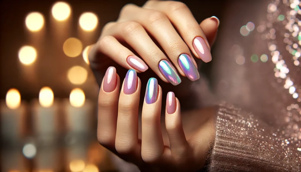 Седефеният маникюр съчетава класическа красота с модерни детайли. Този стил придава фин и загадъчен блясък, наподобяващ ефекта на естествен седеф. Популярни нюанси за 2025 г. са: