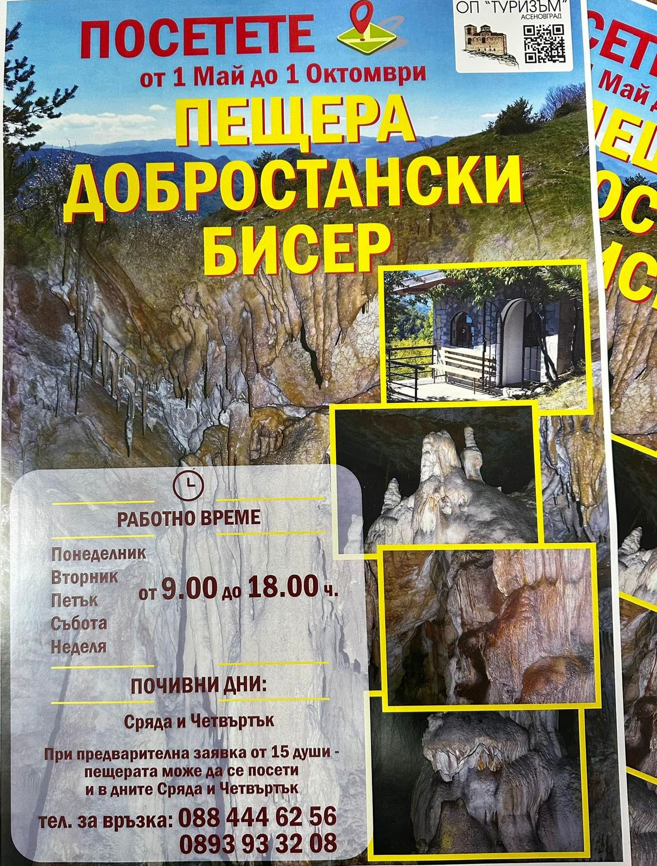 Една от най-посещаваните пещери, не само из района на Асеновград, но и в страната, е „Добростански бисер“. Туристическият обект отваря врати на 1-ви май, съобщиха от Общината.