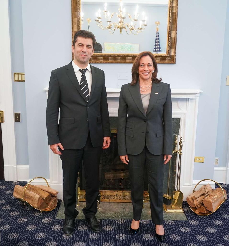Министър-председателят Кирил Петков проведе среща с вицепрезидента на САЩ Камала Харис. В рамките на разговора им в Белия дом двамата обсъдиха стратегическото партньорство между София и Вашингтон и възможностите за задълбочаване на сътрудничеството в интерес на двете страни.