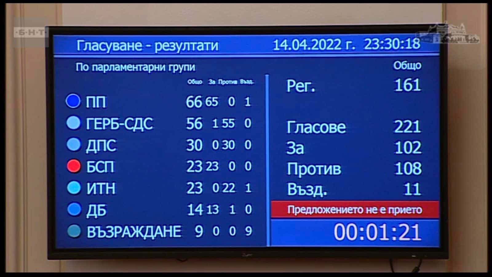 Срещу предложението гласа си дадоха освен от опозицията и депутатите от „Има такъв народ“ /ИТН/. Въпреки това министър-председателят е категоричен, че няма да се губи нито ден.