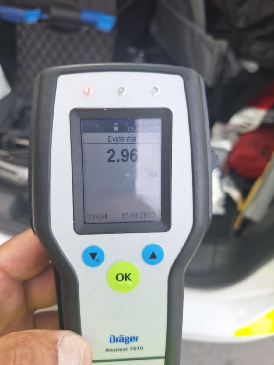 Шофьорите пътуващи зад нея видели какво се случва, догонили жената и я спрели, извършвайки граждански арест. Пристигналите на място полицай тествали видимо неадекватната шофьорка с техническо средство, което отчело 2,96 промила в издишания въздух. Дала е кръвна проба за химичен анализ и е задържана за до 24 ч. с полицейска мярка.