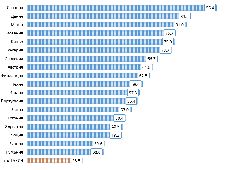 В периода 2020-2022 г. пет страни са предвидили да приключат разходването на поне 50% от заложените в националния си план инвестиции, а средният дял за разглежданите 19 страни е 37,2%. В България по досегашния вариант на плана са заложени разходи, равняващи се на едва 12,7% от общия планиран размер.