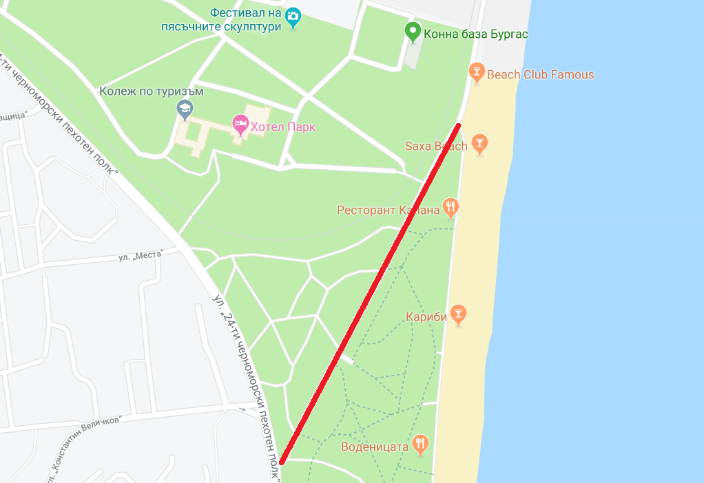 Гостите на града е важно да знаят, че пътят, който води към паркинга и плажа /червената линия на снимката/, както и самият паркинг, са част от Зелената зона на града и престоят се заплаща. Миналата година много шофьори на автомобили бяха санкционирани заради недоглеждане на указателните табели.