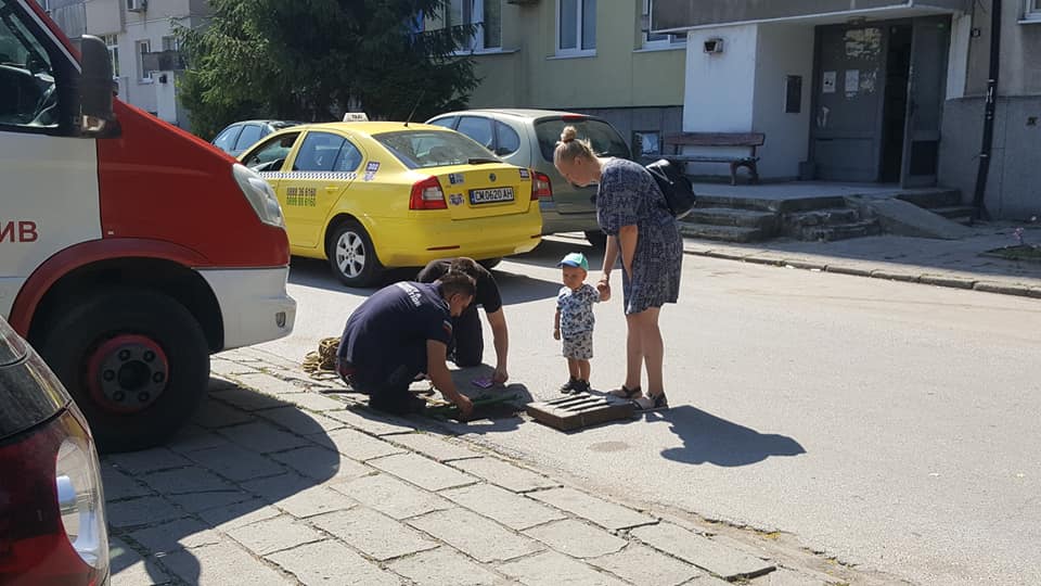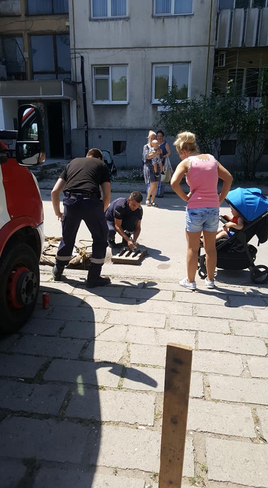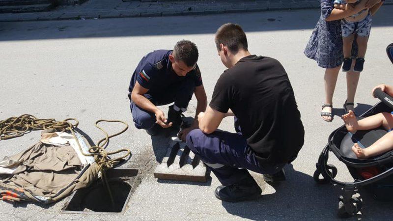 От фотосите става ясно, че животното е пропаднало в една от шахтите на града. Служителите са проявили огромно търпение, за да го извадят. Купили и котешка храна за примамка.