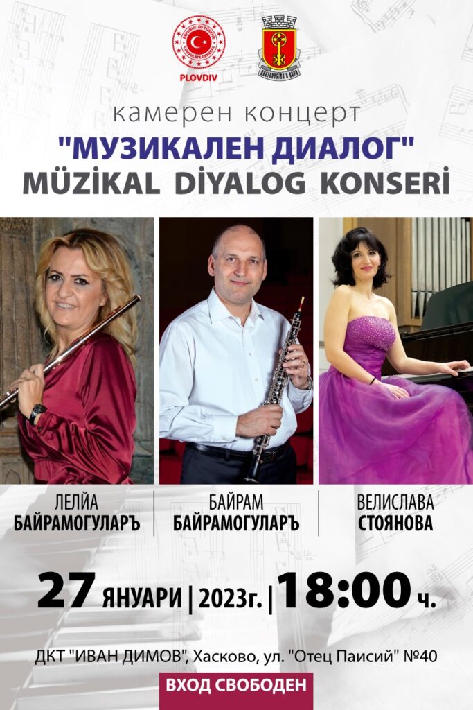 Генералното консулство на Република Турция в Пловдив, с подкрепата на Община Хасково, канят всички ценители на класическата музика на един уникален камерен концерт.