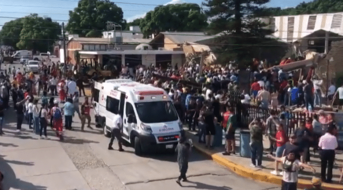 По данни на полицията в крайбрежния щат Тамаулипас около 100 души са били на литургия по време на срутването. Местни медии съобщиха, че това се е случило по време на кръщене. Предполага се, че сред блокираните под останките има няколко деца. Спасителните операции продължават.