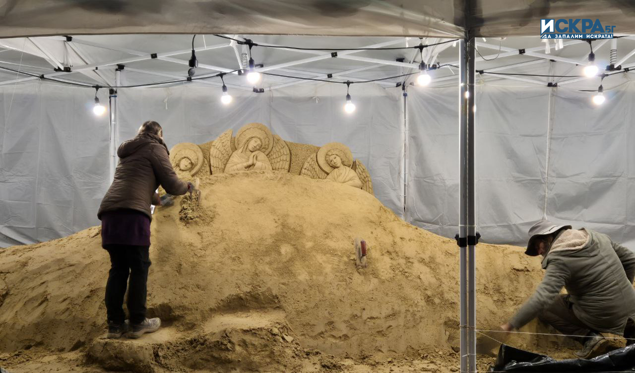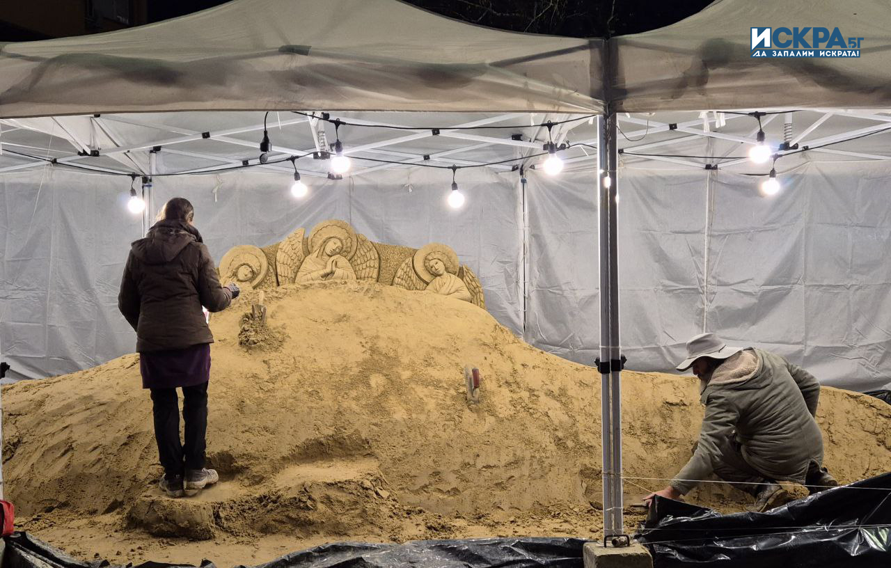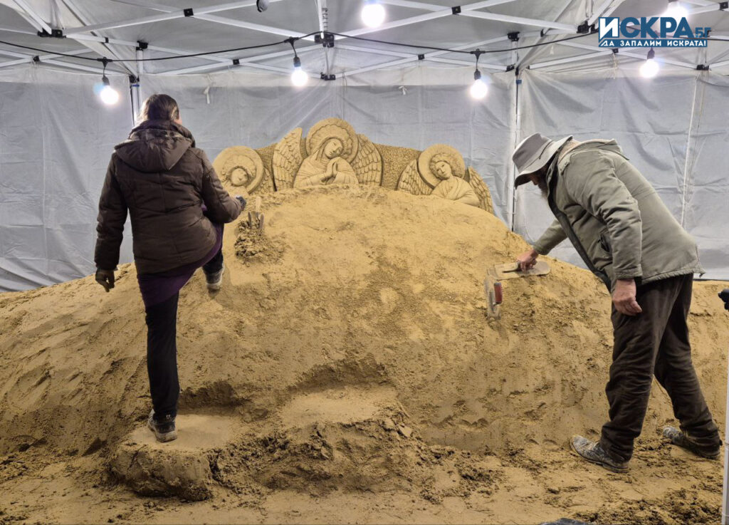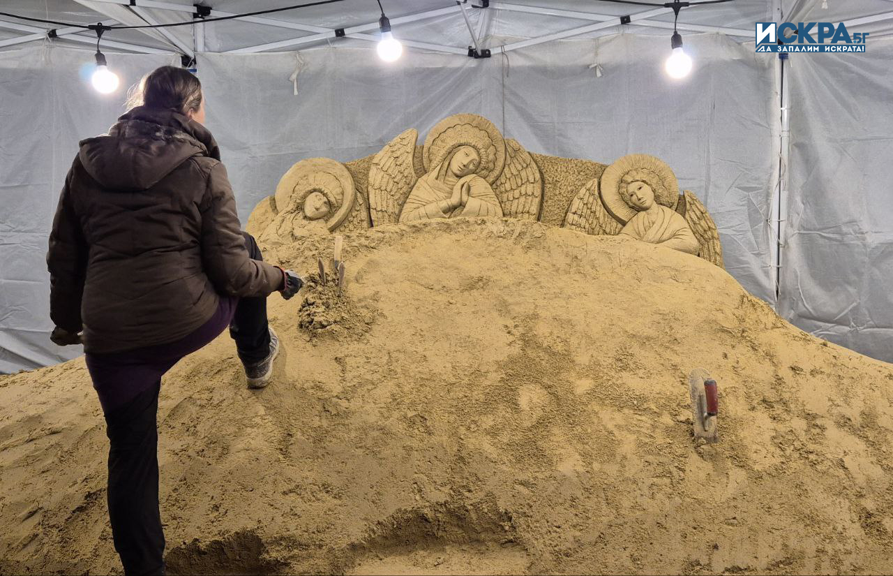 Пол и Реми Хогарт вече оформиха три красиви ангела от своята пясъчна скулптура „Пясъчно Рождество в Бургас“. Творбата оживява пред сградата на Община Бургас, а скулпторите работят до късно вечер, за да завършат уникалната сцена за празничния сезон. Композицията ще изобразява Рождество Христово в православен стил, включвайки св. Богородица, Йосиф и бебето Исус, заобиколени от ангелски присъствия.