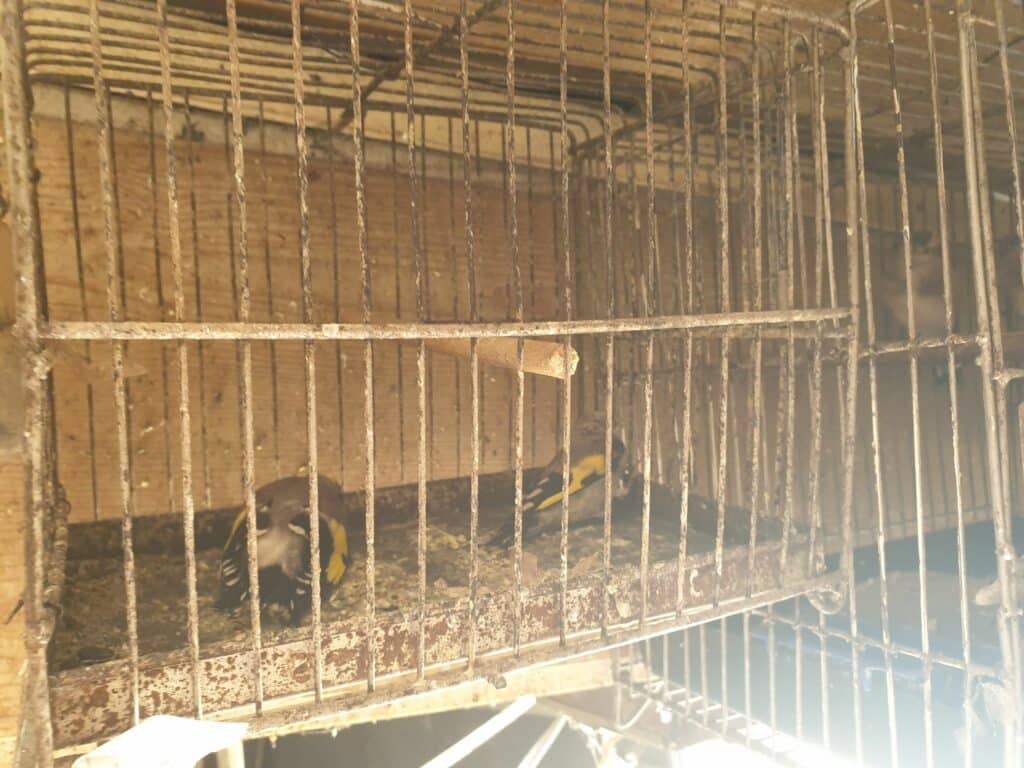 Клетките с 27-те птици от видовете щиглец, елхова скатия, диво канарче, чинка, конопарче и зеленика, били открити в помещения на къщи. Животните са предадени на орнитоложки спасителен център.