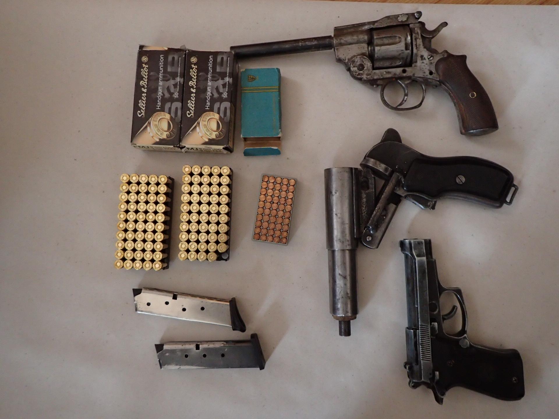 В къщата полицаите са намерили общо 193 боеприпаса, два пълнителя за пистолет, преправен газов, преправен сигнален пистолет и револвер. Още един револвер е открит у него при извършения му личен обиск. Мъжът е задържан за срок до 24 часа.