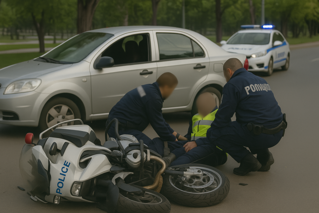 Около 10:00 ч., при движение по ул. „Парк отдих и култура“ в посока Пещерско шосе, лек автомобил с 51-годишен шофьор предприел ляв завой и отнел предимство на изпреварващия го патрулен мотоциклет „БМВ“, управляван от 41-годишен служител на пловдивската полиция. Той е транспотиран в болница и оставен за наблюдение с фрактура на единия крак.