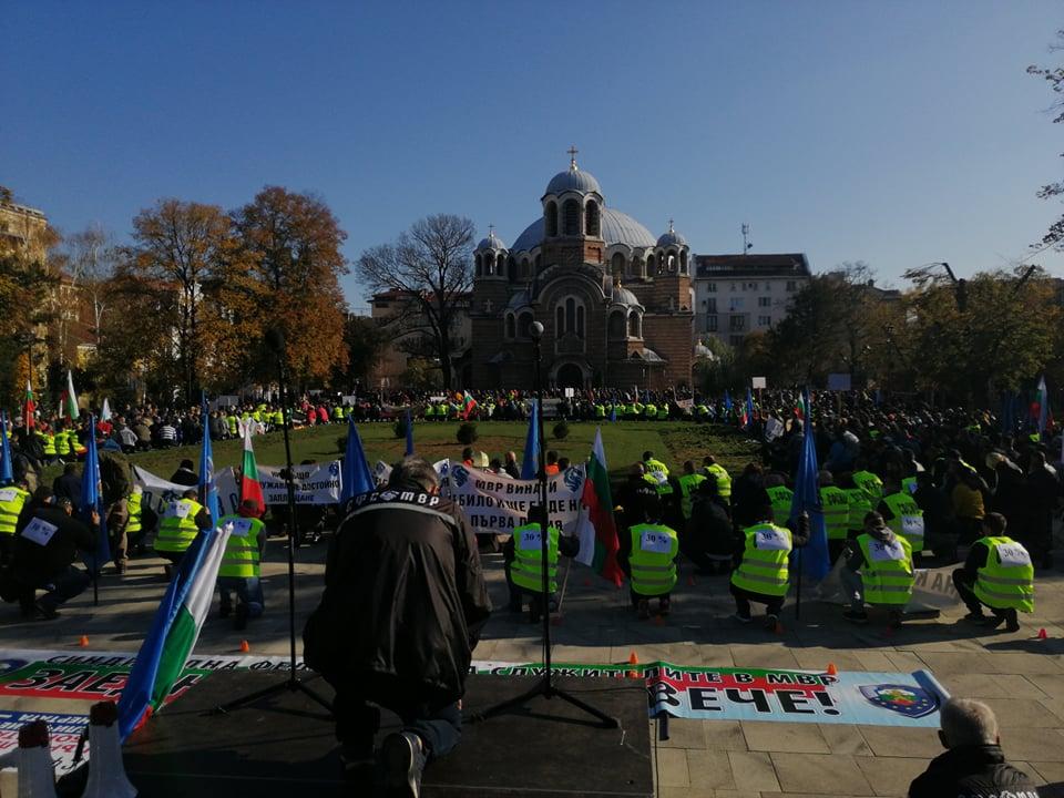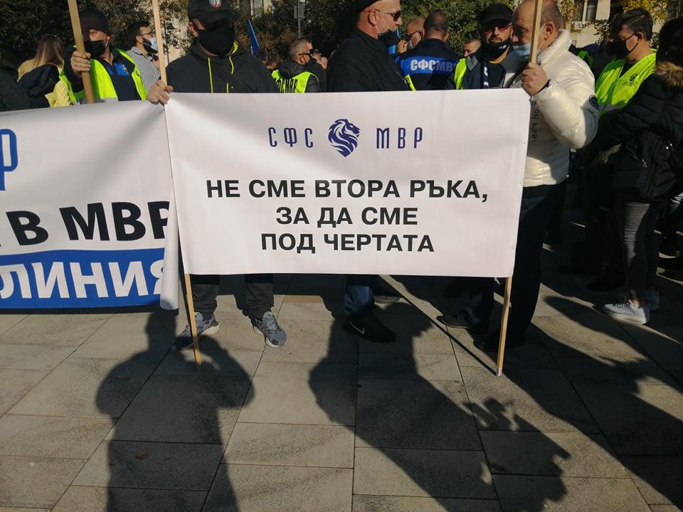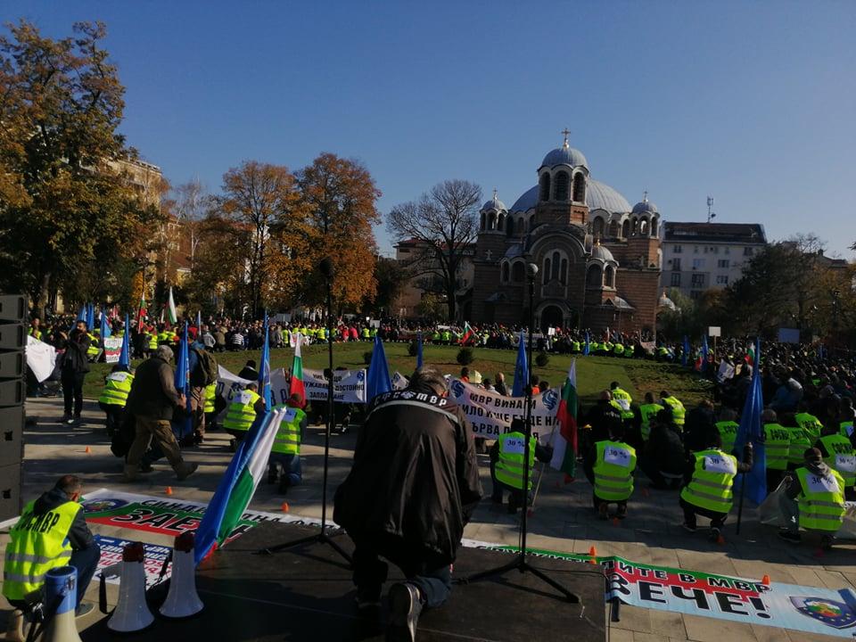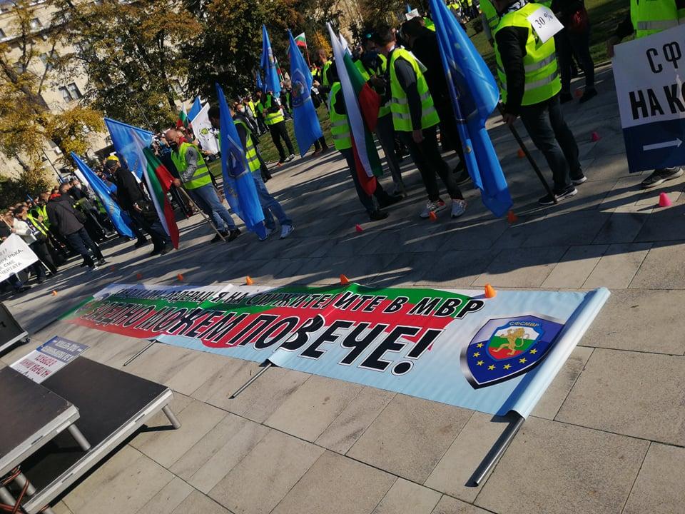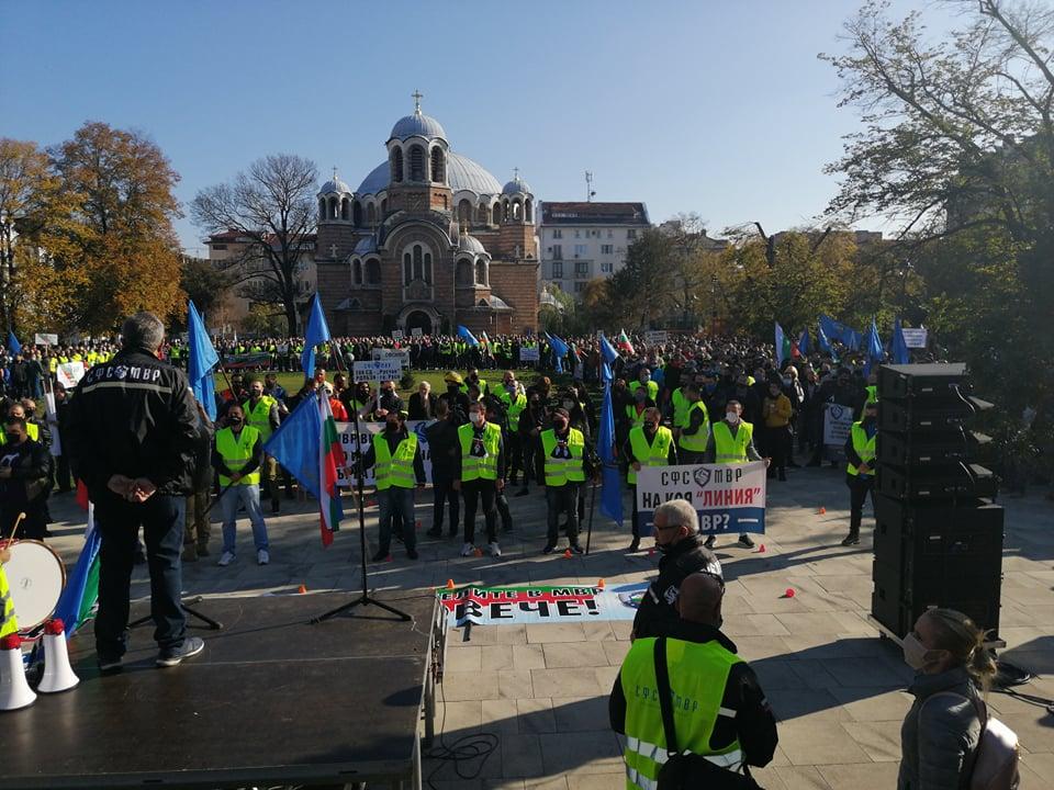 Полицейските служители отбелязват с протест професионалния си празник. Както Искра.бг спомена по-рано, той се провежда днес в столицата пред църквата „Св. Седмочисленици“.