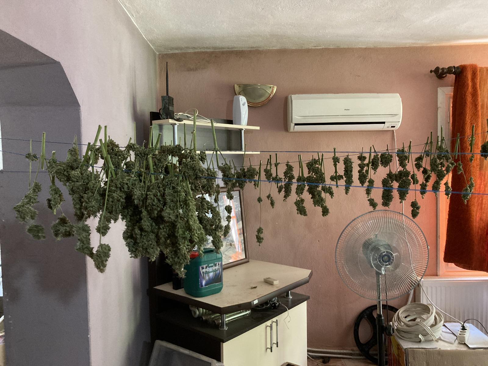 В едно от помещенията били намерени и иззети 282 полуизсъхнали стръка канабис, и около 850 г изсушена тревна маса от същия вид. Иззети са още 241 корена разсад канабис с различна височина – между 20 и 50 см., и оборудване за отглеждане и сушене на растенията. В хода на операцията е извършено претърсване и в жилището на 48-годишната жена, където са открити около 300 г изсушен канабис.