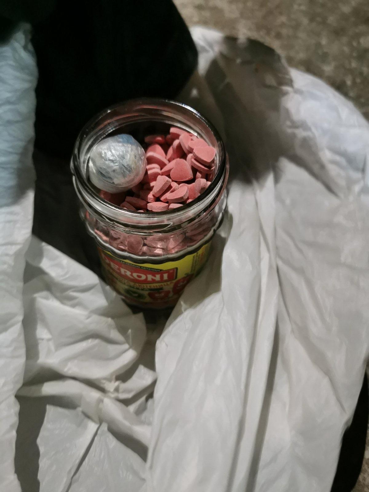 Властите са намерили и иззели от имота – близо 500 грама суха зелена тревна маса /марихуана/, около 800 розови таблетки с формата на сърце /екстази/, зеленикаво прахообразно вещество /екстази/, бучки с неправилна форма от бяло, твърдо, ронливо вещество с остра миризма /амфетамин/, електронна везна и парична сума в размер на 14 910 лева.