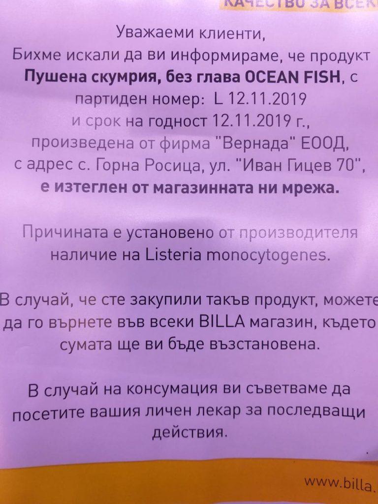 Търговските обекти у нас също имат ангажимента да информират за случаи на заразени продукти чрез общодостъпни средства, като съобщение на сайта си или обявление на територията на магазина.