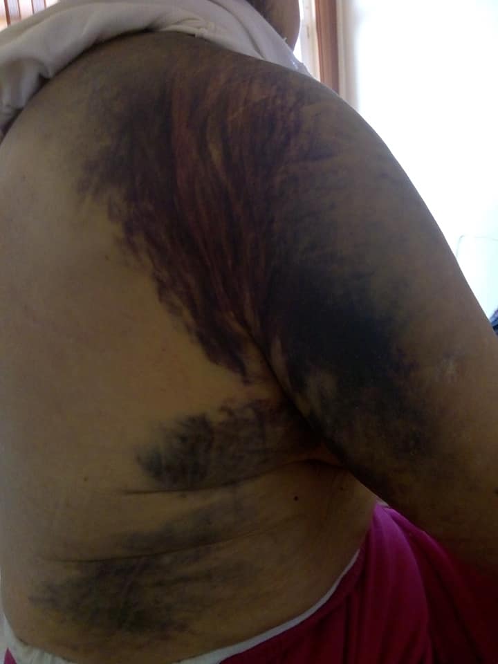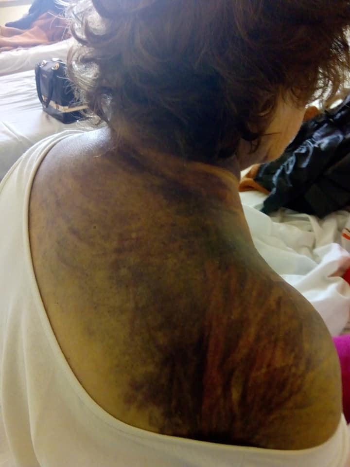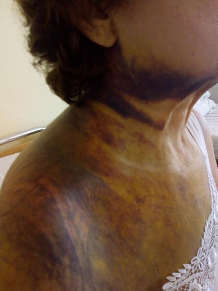 Това не е снимка от някое медицинско списание. Това е моята майка, жертва на „лекарска грешка“. Това са кръвоизливите по нейното тяло, предизвикани от грешно предписано лекарство от д-р Галина Славчева от „Кардиологичен медицински Център“ Варна.“