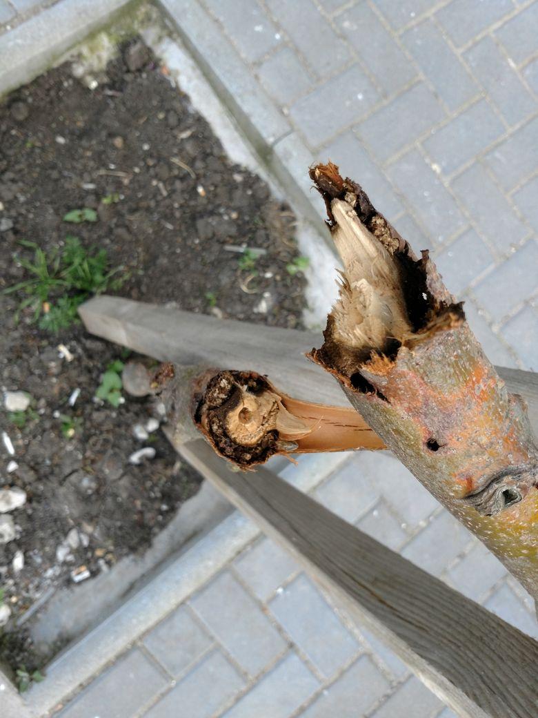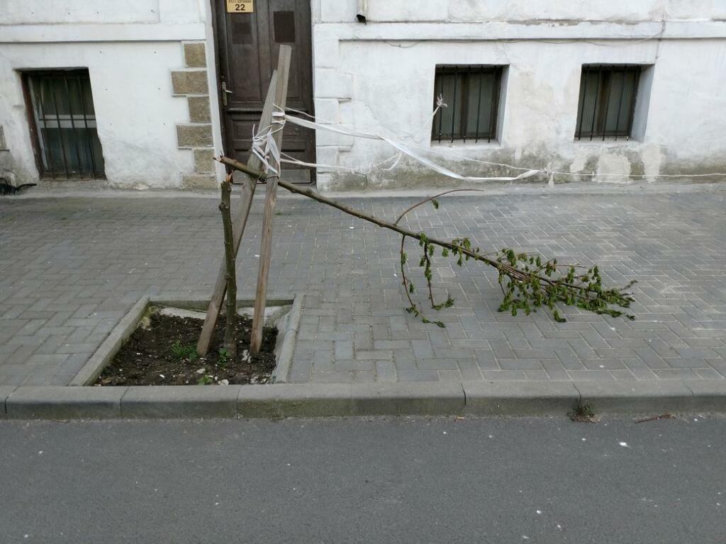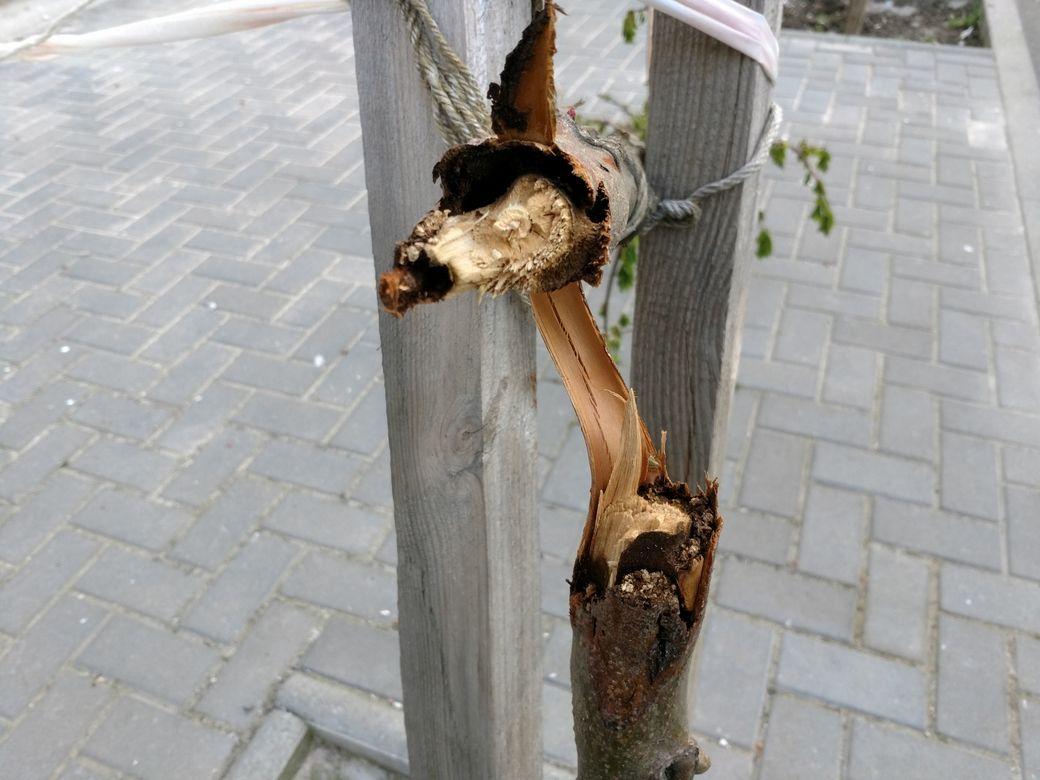 Според персонала на близкото заведение, дръвчето е в това състояние от около 2 седмици, но никой не се е интересувал от него. Не са виждали служители на общината, никой преди нас не е разговарял с тях и не знаят каква е причината за счупеното дръвче.
