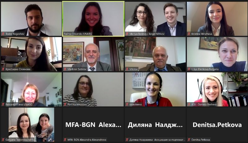 На онлайн брифинга присъстваха дипломати и представители на ресорните дирекции в министерството, Дипломатическия институт, представители на Управителния съвет на Дружество за ООН в България и партньори от неправителствени и младежки организации – Българска платформа за международно развитие (БПМР), Национален младежки форум (НМФ), Асоциация за подпомагане на академичната общност (АПАО) и сдружение „Национална младежка карта”.