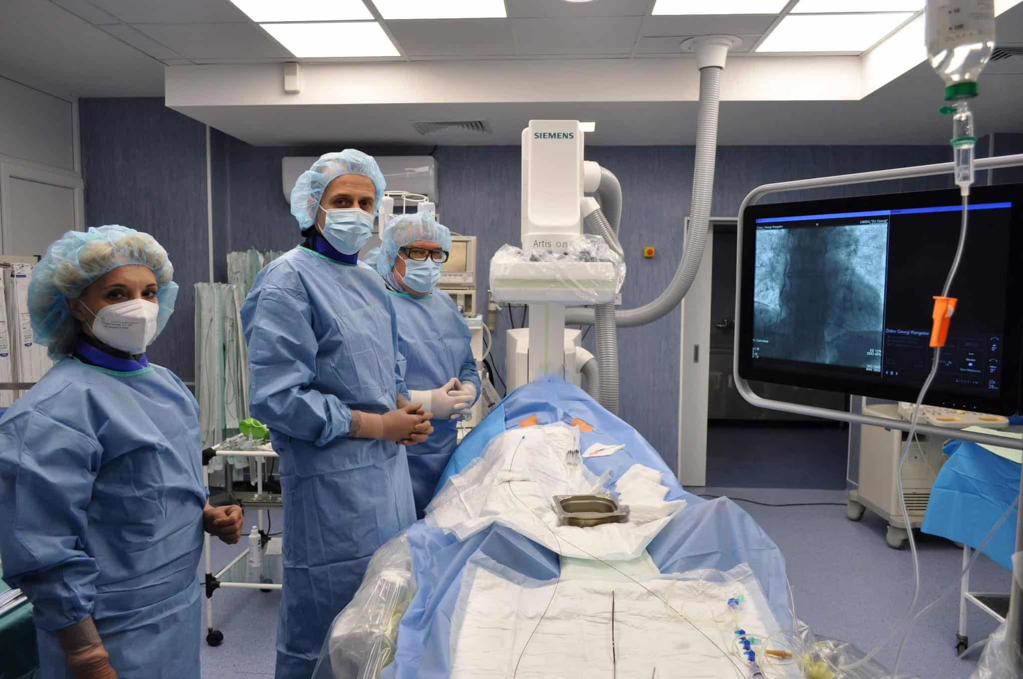 Новият апарат позволява 3D реконструкции и прави образите триизмерни, а рентгеновото облъчването е в пъти по-ниско от старите апарати, обясни началникът на Отделението по инвазивна кардиология д-р Георги Горанов. Нещо повече – съвременният ангиограф обединява информацията за съдовата патология на всички използвани досега образни методики като скенер, ядрено-магнитен резонанс, ехография и изгражда 3D образни реконструкции, които се използват по време на диагностичните и интервенционални процедури. Това е изключително полезно при комплексни съдови интервенции на аорта, коронарни и каротидни артерии, а също и при лечението на структурни заболявания на сърцето, като имплантирането на TAVI – безкръвна смяна на аортната клапа, процедура, която се извършва рутинно в отделението. С него се извършват и високоспециализирано функционално изследване на коронарните стенози, ротаблация, ангиопластика на хронични оклузии, включително и интервенции на каротидни, ренални и периферни съдове на крайниците.