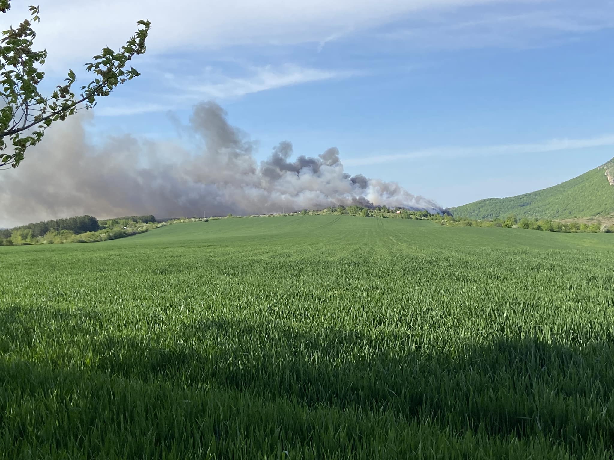 Огнената стихия е избухнала около 16:00 часа, като е обхванала около декар и половина площ. 2 пожарни екипа в Монтана, един от Гаврил Геново и един от сектор „Специализирани оперативни дейности“ пробват да потушат пламъците. Обстановката е усложнена заради вятъра в района, над който се носи черен дим.