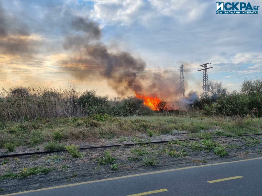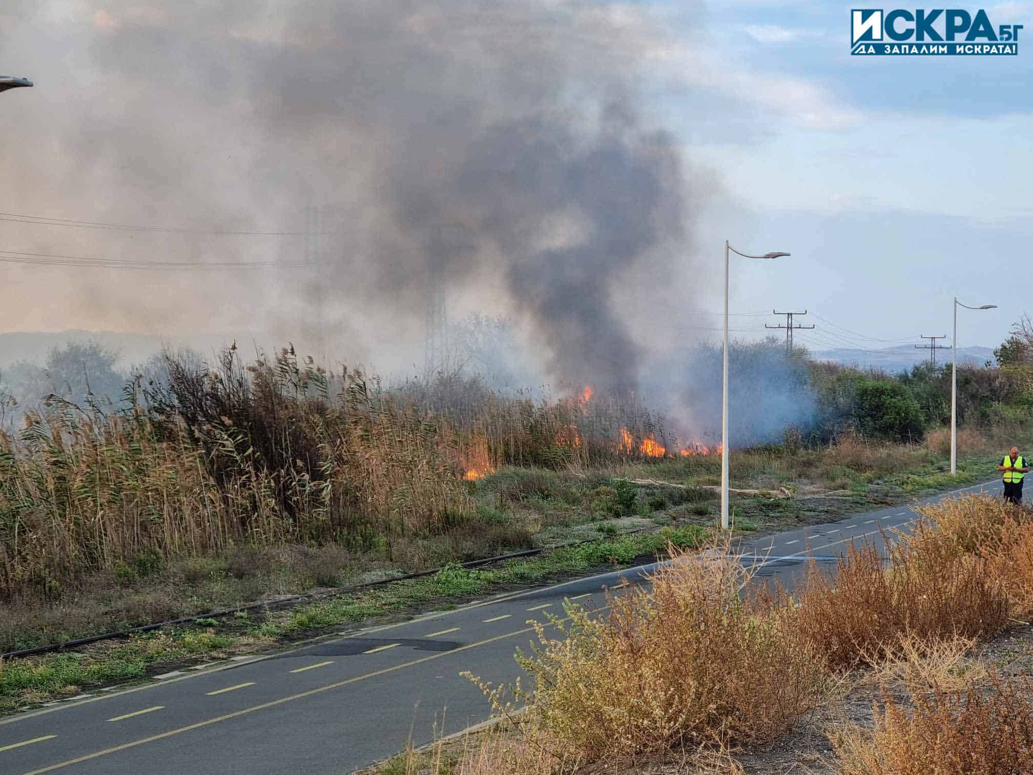 Гори сухата растителността, която се намира между Атанасовското езеро и пешеходната алея към квартал „Сарафово“ в Бургас.