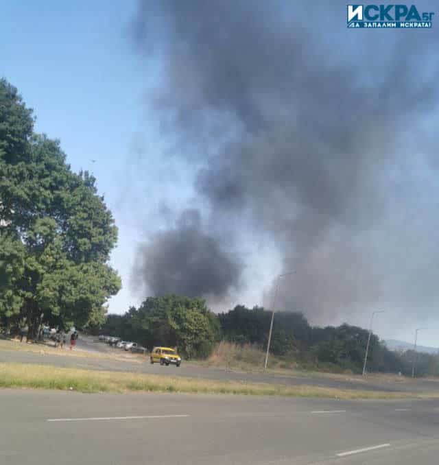 От ОДМВР-Бургас съобщиха, че горят сухи треви и растителност. На място има два притовопожарни автомобила и шестима огнеборци, които се опитват да загасят пожара.