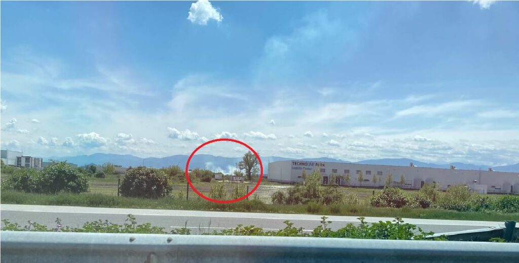 Пожар е избухнал до фирмена сграда след Пловдив. За това ни сигнализираха наши читатели, които ни изпратиха и снимков материал.