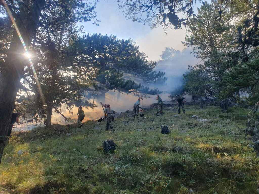 Двадесет военнослужещи от Трето бригадно командване – Благоевград с 4 специализирани машини от ранна утрин са на терен и заедно с пожарникари, горски служители и доброволци полагат усилия за гасенето на огнищата.