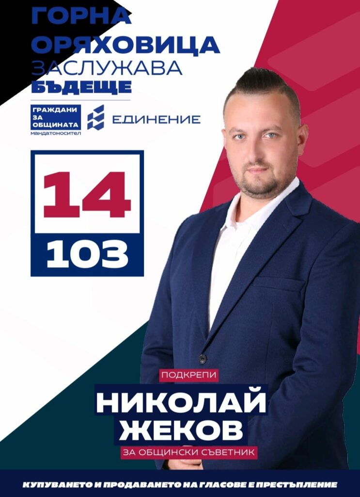 ПП „Единение“ с мандатоносител „Граждани за общината“ се включва в битката за Общинския съвет в град Горна Оряховица на 29 октомври 2023. Мечтата на местния координатор Николай Жеков и екипа за развитие на града е изградена върху три основни точки: