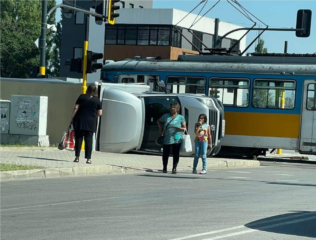 Инцидентът е станал около 11:00 часа днес в района на метростанция “Искърско шосе” в кв. „Дружба“. Вследствие на сблъсъка миниванът се е преобърнал. Засега няма информация за пострадали хора.