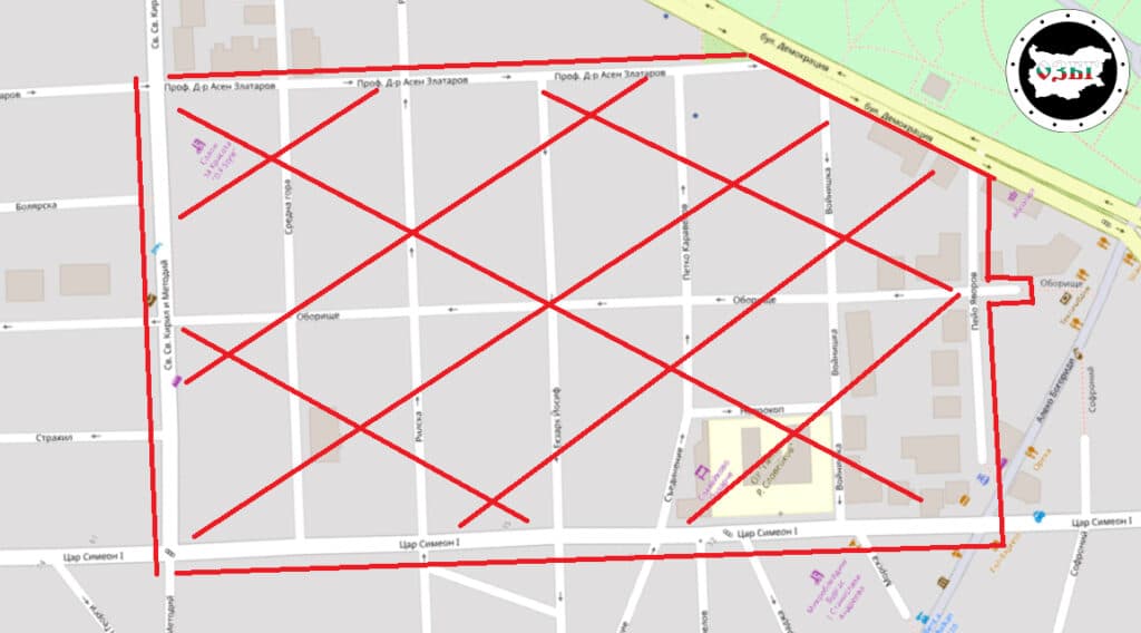 – улица „Рилска“ в частта си от улица „Цар Симеон I“ до улица „Проф. д-р Асен Златаров“;